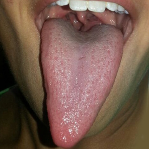 אחרי כחודש טפול באמצעות צמחי מרפא מבית HO CHI VEDA נ אנו רואים כי הלשון אחידה וטיפ הלשון אינו כלפי מעלה אלא כלפי מטה, טיפ הלשון אינו אדמומי, והגל השקוע נעלם. כל התלונות נעלמו מלבד הצרבת שעדיין דורשת טיפול. טופלה ב- SPH על מנת להוריד חומציות בקיבה, רוגיקל, טריוודה לאיזון מערכת העיקול וכבד. |